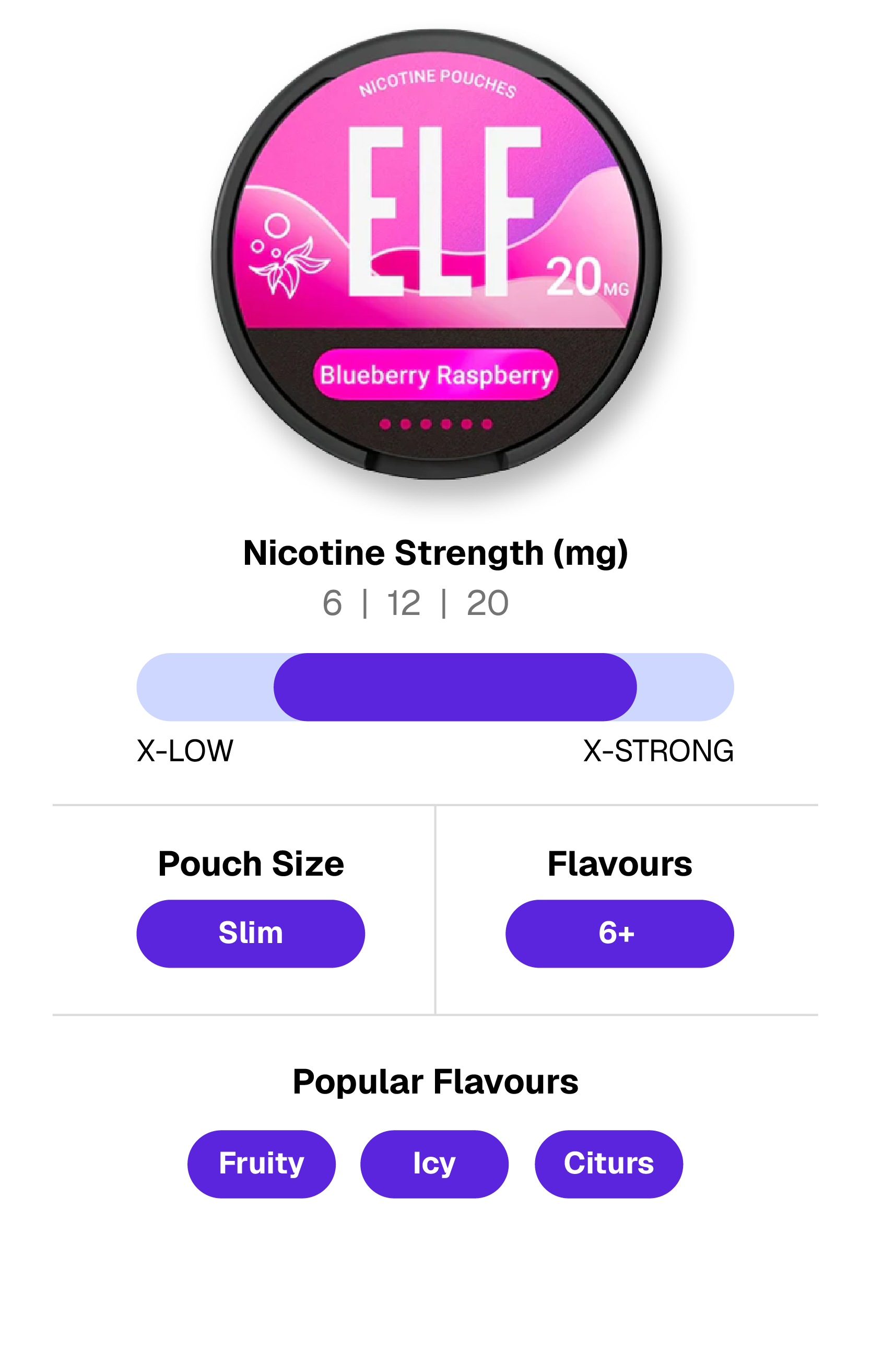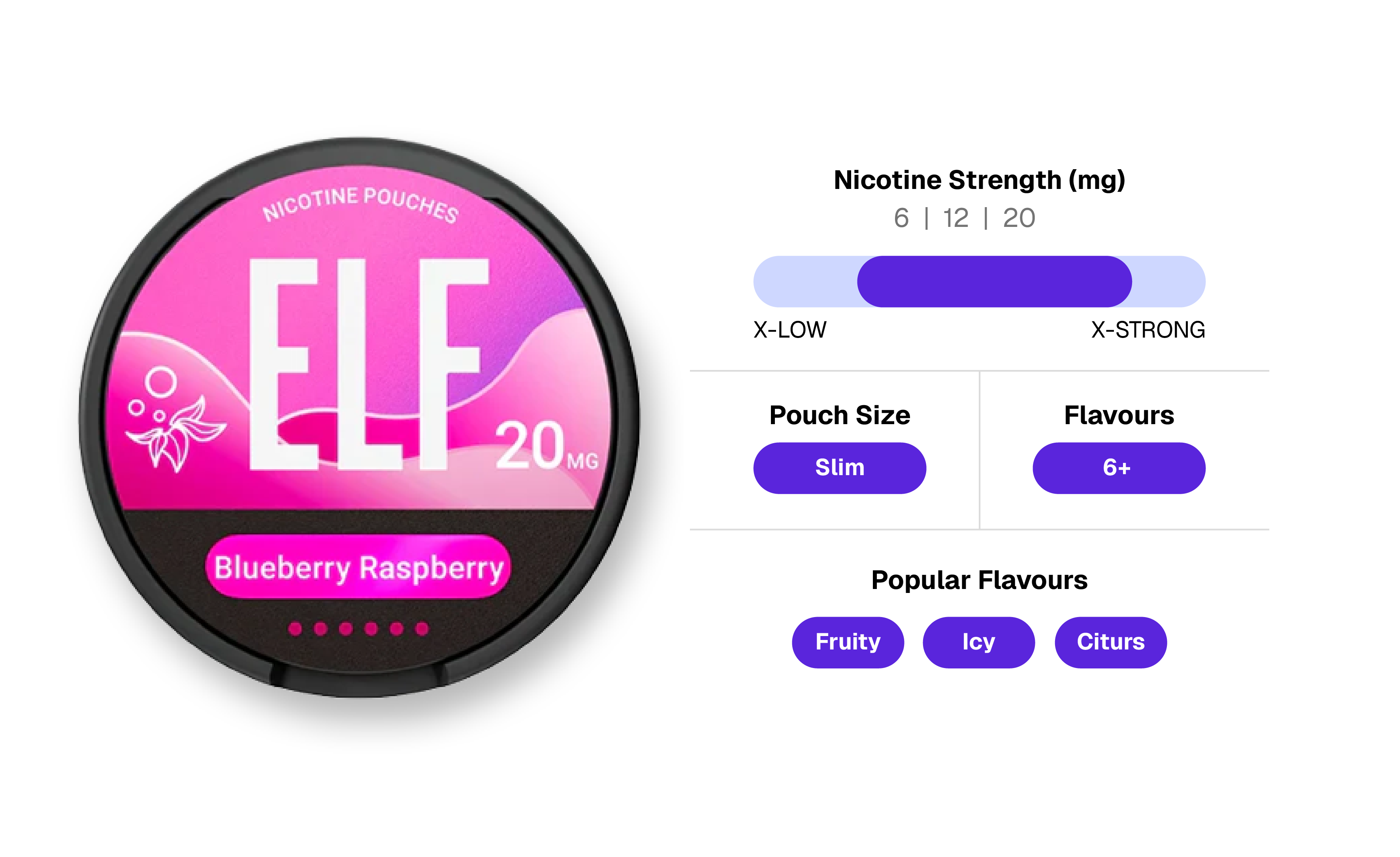 ELF pouches come in a slim format, allowing them to sit softly and comfortably under the lip. The slimmer shape feels light and natural, making it ideal for users who prefer a discreet and less bulky option. It’s a simple, comfortable choice for anyone who wants to enjoy nicotine throughout the day without drawing attention.