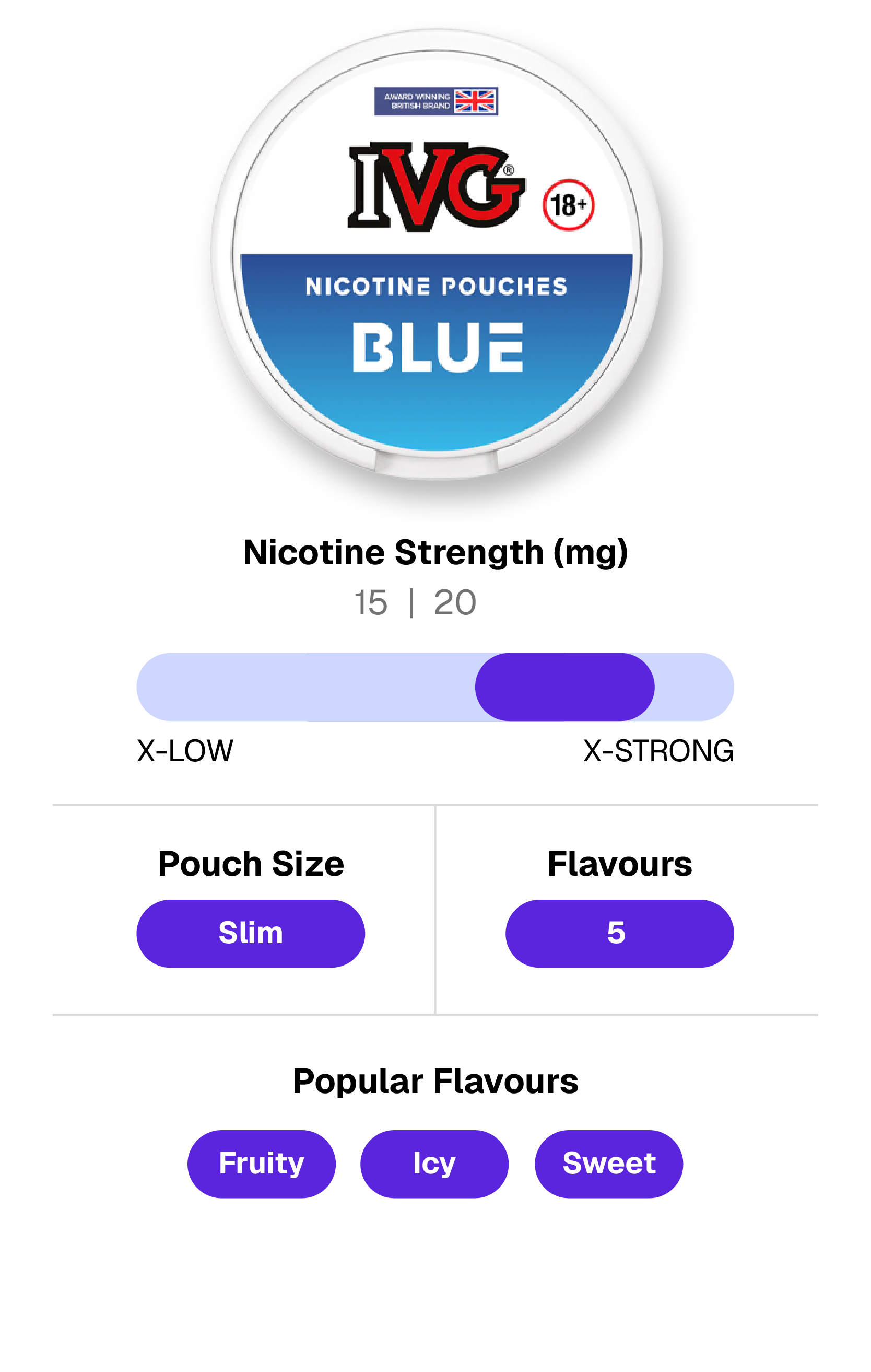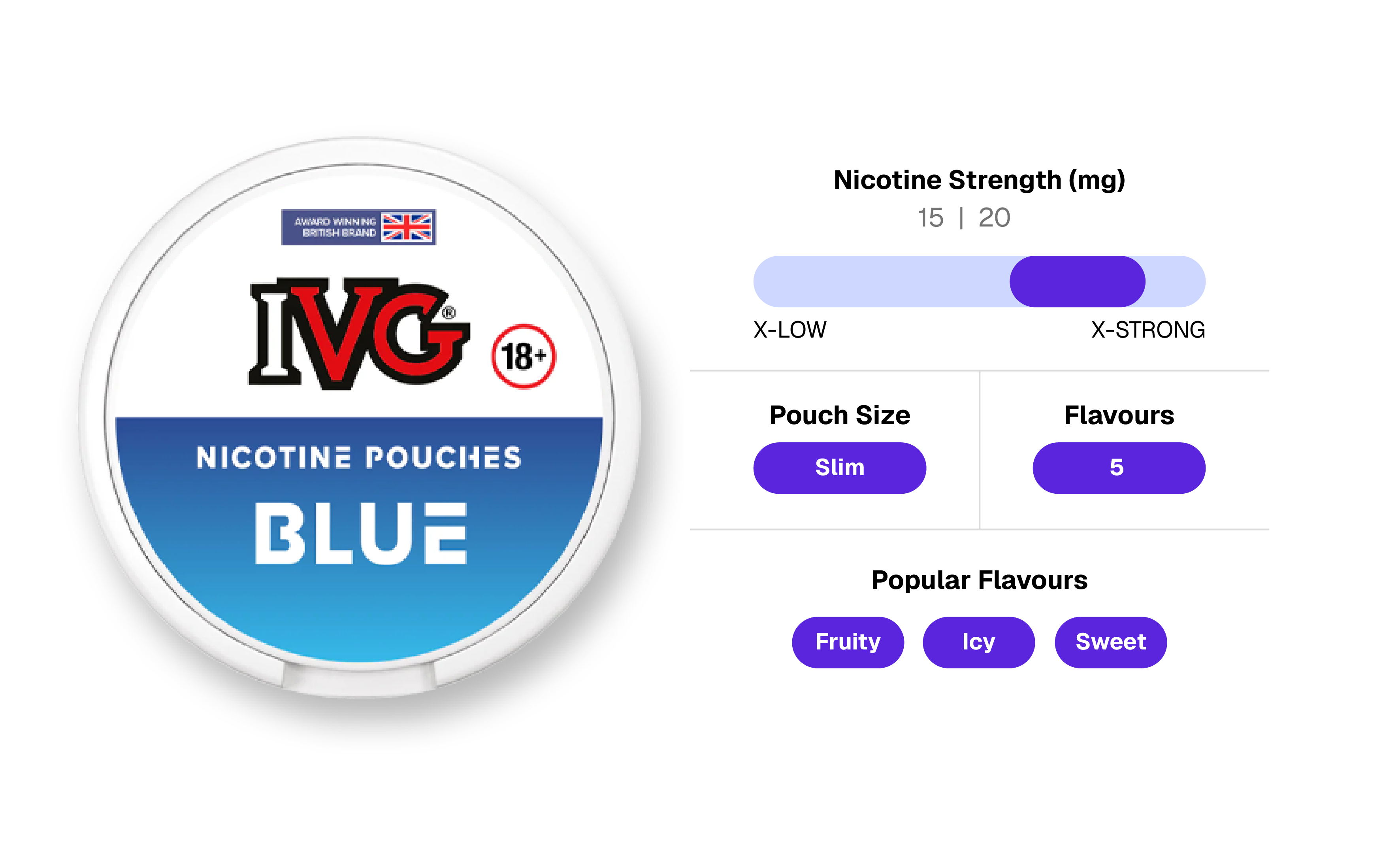 IVG grew from the belief that nicotine should feel clean, flavourful and easy to enjoy. With roots in the UK and a focus on bold taste, smooth performance and everyday convenience, the brand creates slim, discreet pouches that fit naturally into any routine. Originally known for flavourful e-liquids, IVG has now grown to product not just e-liquids, but several other forms of alternative nicotine products including big puff vapes, nicotine film and of course nicotine pouches. Made with careful craftsmanship and IVG’s signature mix of mint, it’s become a reliable choice for users looking for a modern, smoke-free way to enjoy nicotine.